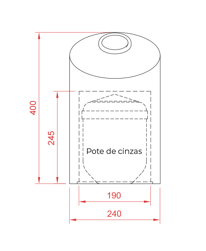 Concebida para estar no cemiterio e armazenar as cinzas do seu ente querido, esta urna tem um peso de 23 kgs e capacidade para um pote de cinzas que será devidamente selada.